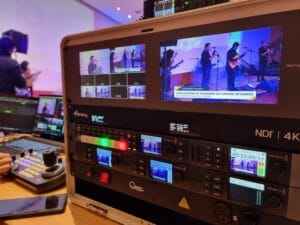 Utilizamos una o más videocámaras profesionales para emitir en la más alta calidad de audio y video a redes sociales como Facebook Live, YouTube Live, Zoom, Teams, Meet, o a través de streaming Full HD con conexión Punto a Punto a estudios de TV.